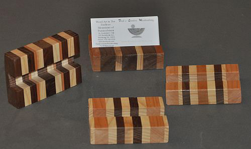 Ever misplaced your cellphone? This shouldn’t happen anymore if you put it in my attractive Cellphone Holder. These attractive wooden holders can also be used as a Business Card Cozy. They are constructed of multiple layers of hardwood in an attractive pattern. It will hold your cellphone, business cards, recipes, etc. depending on what you want it for. The holder measures approximately 2.6" wide x 3.5" long with a 0.75" wide by 0.6" deep groove to hold your phone or cards. It is wide enough to reliably hold the phone so it doesn’t tip over.