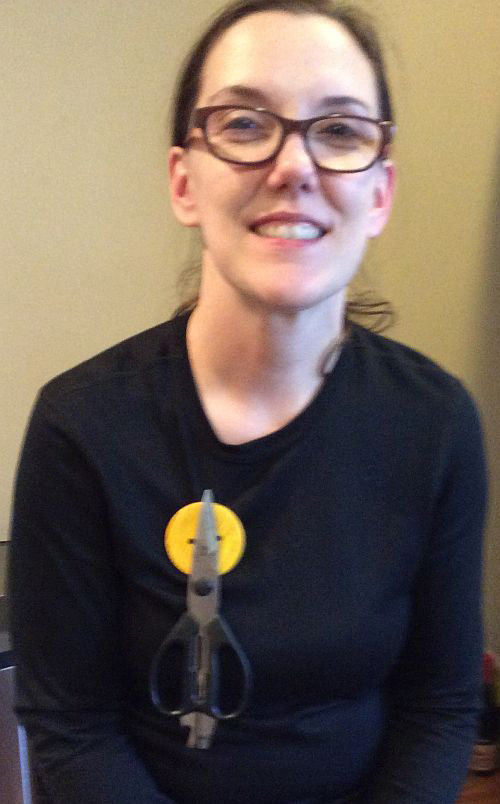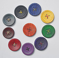 Ok, I don't really use steroids to make them but it may seem as if I do. They are constructed of a 2.75" (70 mm) diameter button turned from White Ash. In the back of the button, above the 4 thread holes is a powerful Rare Earth magnet that is the part that does the work. You hold it to your coat, blouse, shirt, etc. with a second backing Rare Earth magnet that is, again, very powerful. The combination of the two magnets makes the Magnetic Button Scissor Holder strong enough to hold a large pair of scissors (see my photo). It is doubtful that you will ever hold large scissors such as this with it but it shows how powerful the magnets are. I thread the button to give it an authentic look. I presently have several colors available for these buttons. In the photo below, starting with the yellow one and going clockwise, they are Yellow, Purple Purple 2, Oxblood, Deep Red, Black, Blue and the center one is Orange. I can also supply larger numbers (for guilds, etc.) at a discount price- ask about this.